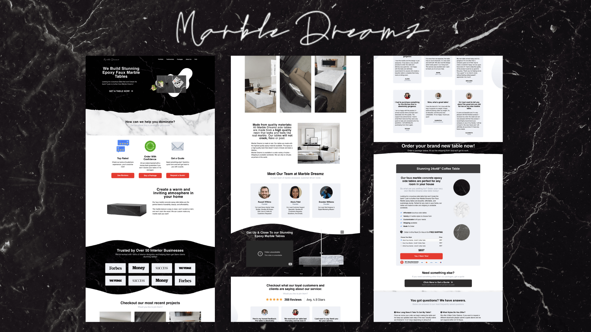 Asking price: $8,500 or best offer Marble Dreamz tables are beautiful and stylish, adding a touch of luxury to any home.