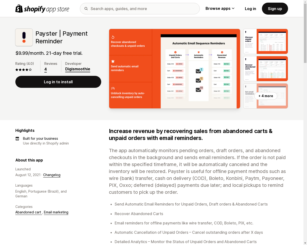 An ecommerce app development company, with a portfolio of 10 Shopify apps and serving 12,000 active merchants, is refocusing its efforts on a single app. As part of this strategic adjustment, they are offering the Payster app for sale. Payster is an application designed to send automatic email reminders for orders where payment has not been completed, particularly useful for payment options like bank transfers or cash on delivery, predominantly used in Europe. With Shopify expanding its functionalities for delayed payment methods, Payster offers enhanced features since it allows customization of reminder content and includes a dashboard to track unpaid orders, unlike Shopify's native solution.