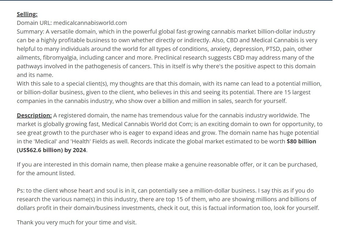 A domain in the fast-growing powerful Medical/Cannabis billion-dollar global industry. this domain has a huge opportunity and a super potential for you...
