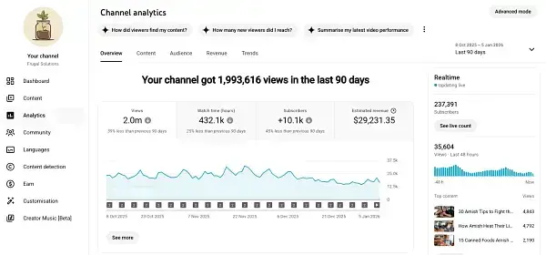 The entertainment-focused channel, established in 2023, leverages YouTube ads via Google AdSense to generate significant revenue, drawing in $14,449 over the past 28 days and $274,305 in the last year. With an RPM of approximately $14, the channel successfully engages a 66.9% American audience, primarily males over 45 interested in mysteries and cryptids. Managed by a 6-member team, the channel uploads horror/mystery clips accompanied by commentary, keeping monthly production costs around $1300. These include scriptwriting, video editing, and voiceover subscriptions.