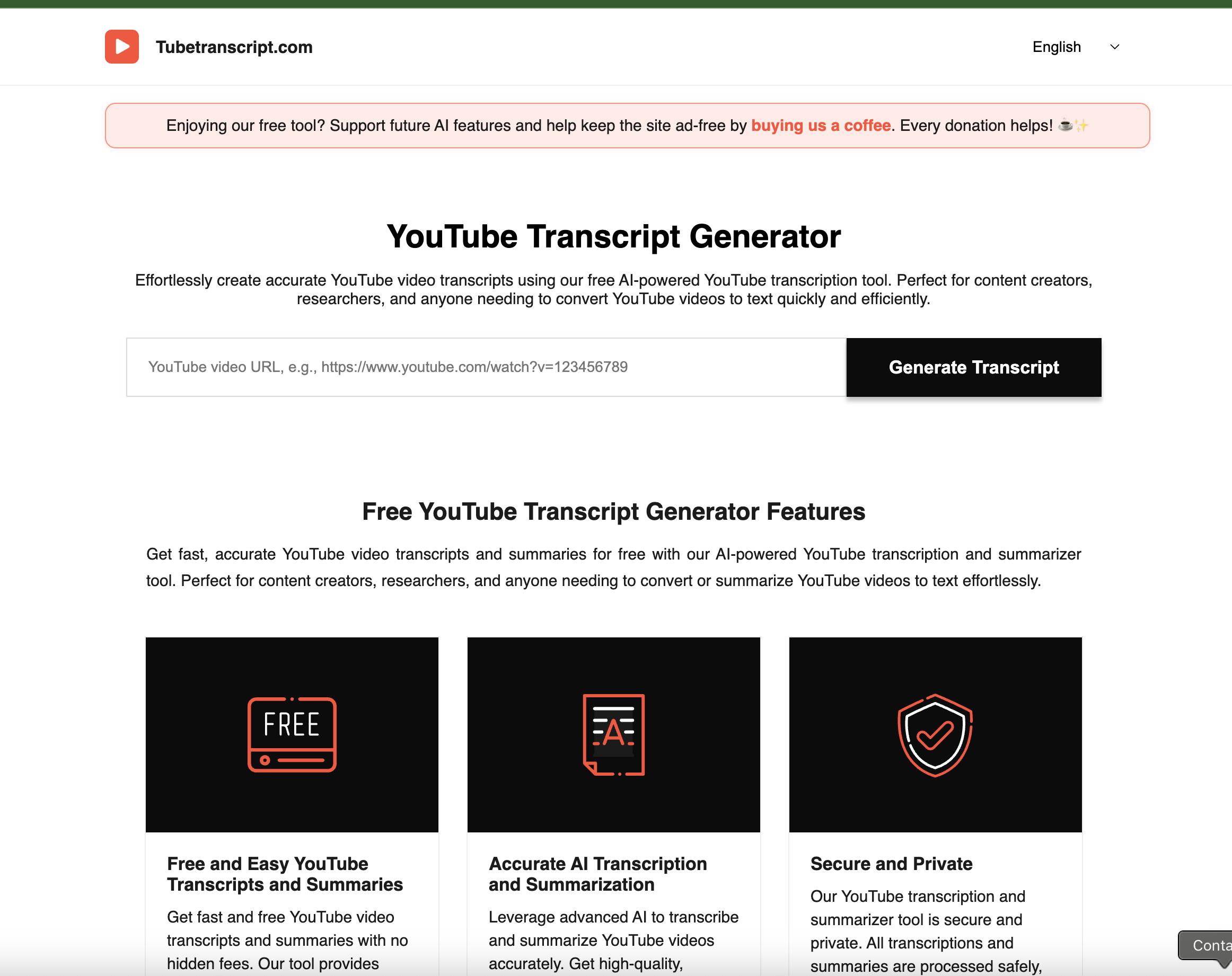 Passive YouTube transcript site no hosting costs, ~$50/mo donations, 3 k+ live users (1.1 k US), huge upside with paid AI add-ons.