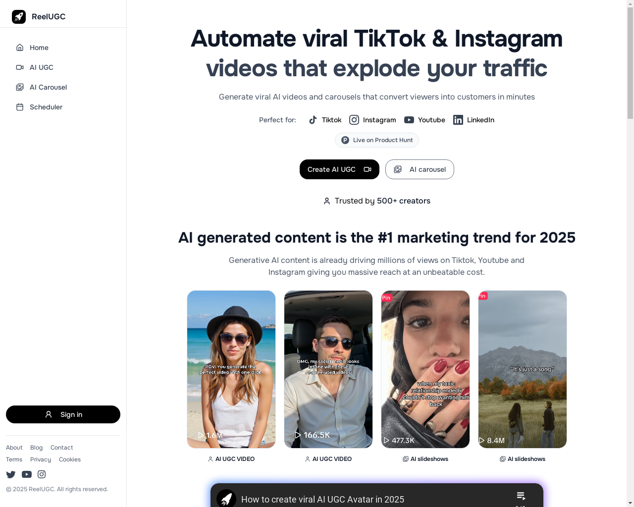 The platform described is an AI-powered SaaS product designed for automating the creation of viral content on social media platforms such as TikTok, Instagram, and YouTube. The service caters to the rapidly growing trend of "faceless content," offering modules like an AI-generated User-Generated Content (UGC) video tool with avatars, a carousel creator customized for social media, and a multi-platform content scheduler. It boasts top-notch technology stacks for both frontend (Next.js, Tailwind CSS) and backend (AWS, Google OAuth), further supported by robust monetization tools like Stripe for managing subscriptions.