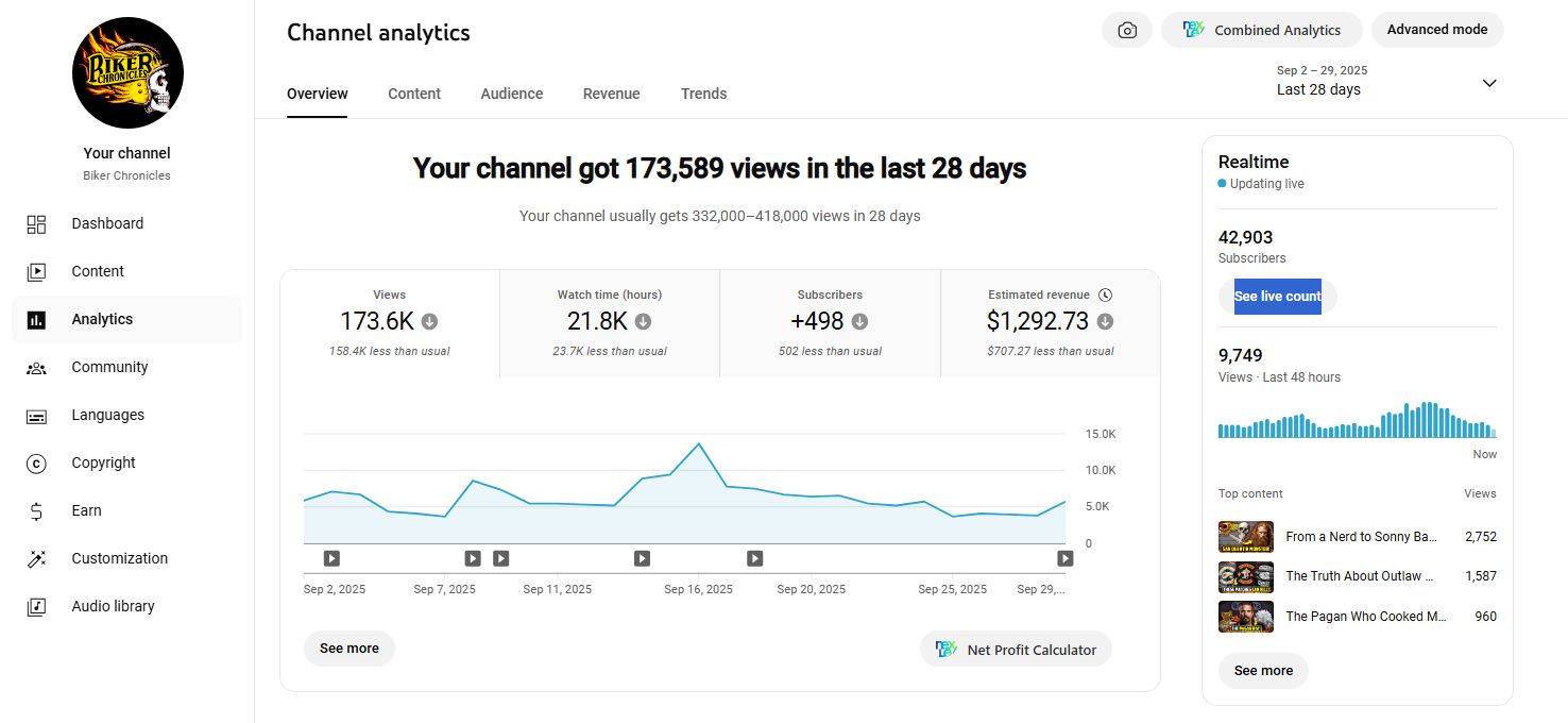 The business boasts significant attributes: a profitable YouTube channel with 43,000 subscribers, 14 million views, and an active paid community. Content comprises stories on outlaw motorcycle clubs and motorcycling adventures, which engage a passionate global audience. Operated by a small, knowledgeable team, it offers low overhead and seamless transition potential for a new owner. Monetization avenues include advertising revenue, memberships, sponsorships, and branded content. Opportunities for expansion include a biker podcast, content frequency increases, collaborations, and new premium offerings. The business has demonstrated admirable growth and customer loyalty through organic acquisition and a steady engagement rate. Financially, the venture shows a reliable revenue stream with future growth prospects via merchandising and affiliate marketing. The smooth transition to new ownership is anticipated with the current team's readiness to aid in operations. The incoming owner will need a Google AdSense-approved account to participate fully in monetization activities.