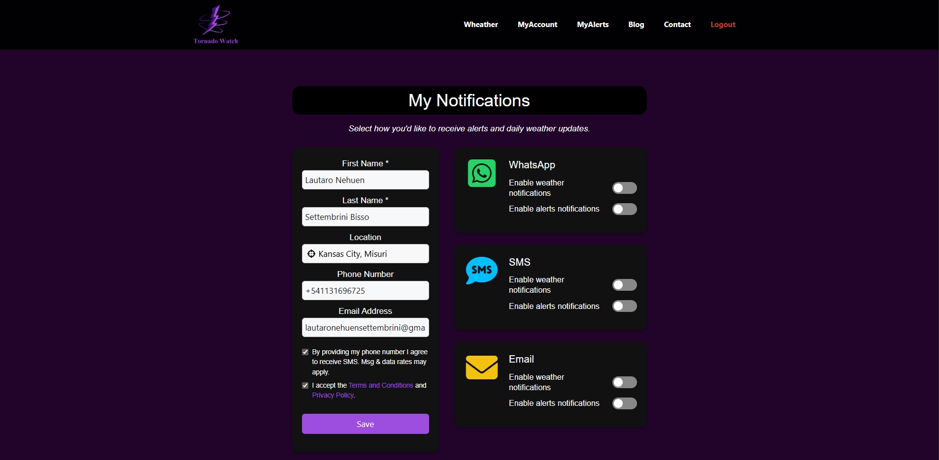 Automated US tornado + severe-weather alert platform with notifications + subscription-ready. Fully built + launch-ready.