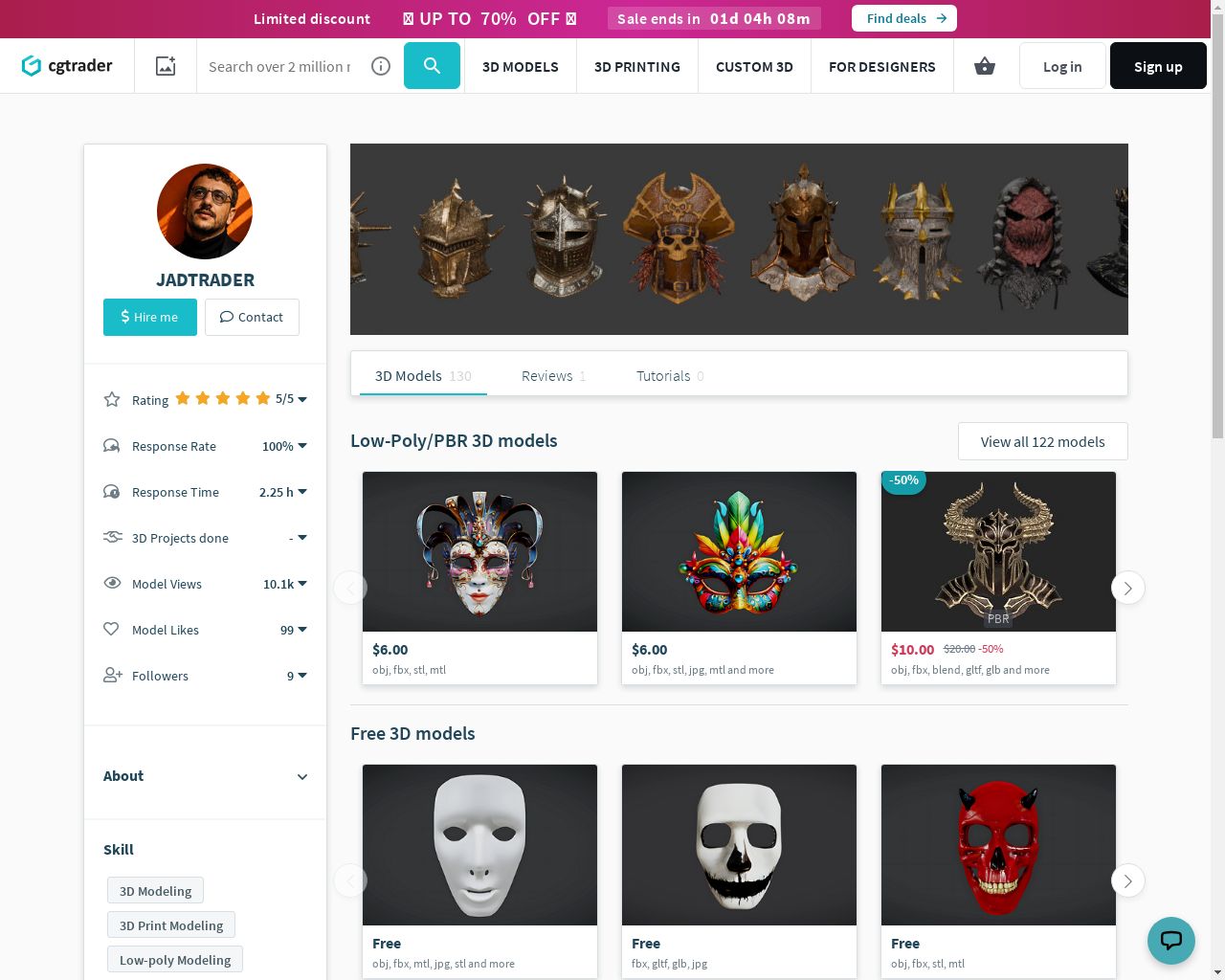 Profitable CGTrader store with 130+ premium 3D masks & helmets. 5-star rating, 10k+ views. High-growth niche with huge passive income potential.