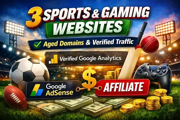 3 Sports and Gaming Websites with Verified Google Analytics Traffic and Aged Domains Monetized with Adsense and Affiliate, Zero reserve