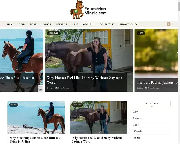 For sale: EquestrianMingle.com WordPress site with 80 articles on equestrian gear, horse riding, equestrian events, etc. Ready to grow and open to offers.